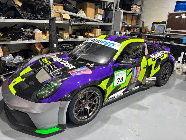 Set up for endurance racing: flood lights, helmet blower, hydration system, Motorola radio, CoolSuit, 2" double dry break fuel filler